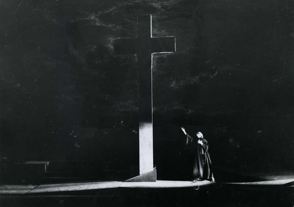 Przedstawienie składało się z czterech części i dwunastu odsłon. Toczyło się na spiętrzonych podestach uwieńczonych trzema krzyżami, przypominającymi Golgotę i zarazem Wilno, na tle horyzontu ukazującego niebo w różnych porach dnia i nocy. Ponadto do poszczególnych obrazów wprowadzane były dodatkowe elementy architektoniczne. W obrzędzie był to przekrój cerkwi. Duchy nie pojawiały się na scenie. Ich obecność sygnalizowały reakcje wiejskiej gromady i nadprzyrodzone zjawiska. Spektakl był grany 54 razy.